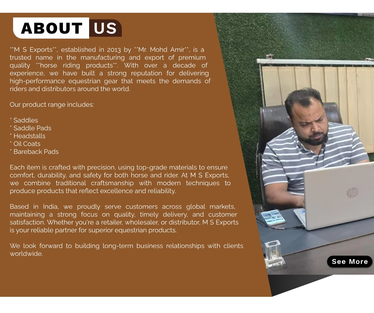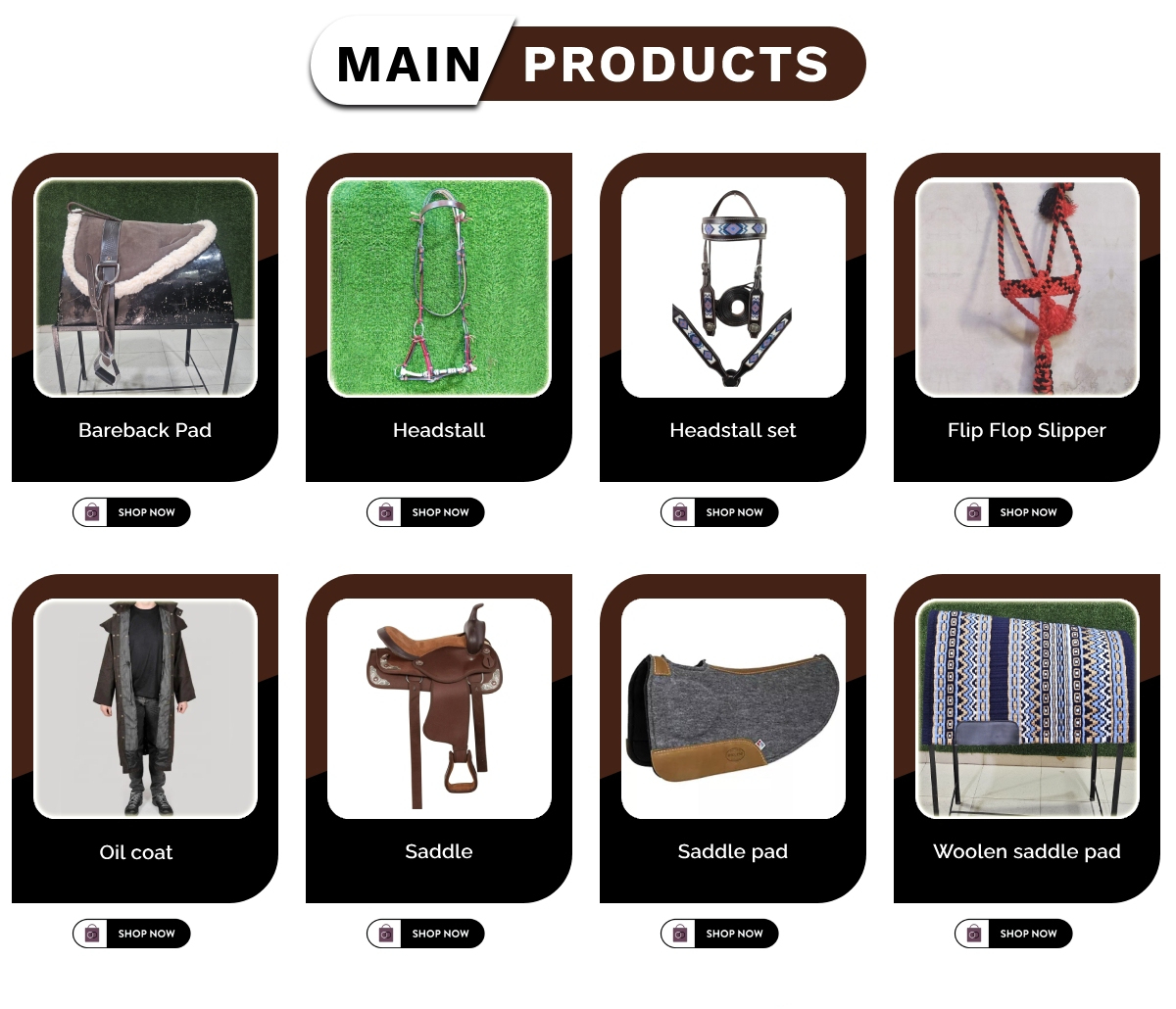 Productos principales:Sillín de cuero, caballete, cuello de pecho, cincha, almohadilla de sillín